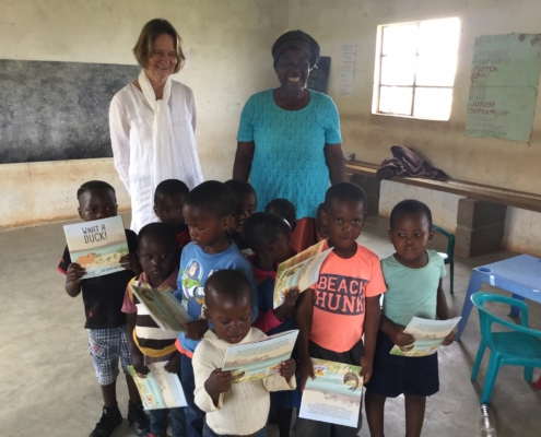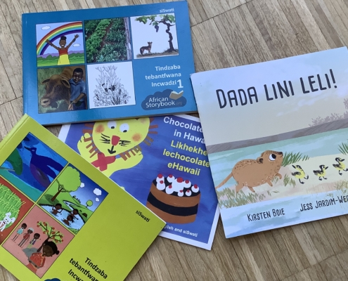 Wie wichtig Geschichten und Bücher für Kinder sind und welchen Einfluss sie auf ihr gesamtes weiteres Leben haben können, haben in den vergangenen Jahren  vielfältige internationale Untersuchungen gezeigt. (Und viele Menschen wissen es aus eigener Erfahrung.) Dies gilt umso mehr, wenn – wie in Swasiland – Kinder keinerlei Zugang zu neuen Medien oder auch nur Fernsehen haben, da die Stromversorgung fehlt. In Swasiland aber gibt es kein einziges Bilder-, Kinder- oder Jugendbuch in der Landessprache siSwati. 2014 haben wir daher ein kleines zweisprachiges Bilderbuch (englisch-siSwati) für sämtliche 100 Neighbourhood Carepoints drucken lassen, 2016 kamen zwei umfangreiche Bilderbuchsammlungen auf siSwati hinzu, die seitdem regelmäßig nachgedruckt und an die NCPs verteilt werden. Jedes Kind bekommt diese beiden Bücher geschenkt, wenn es den NCP verlässt, um in die Schule zu gehen.